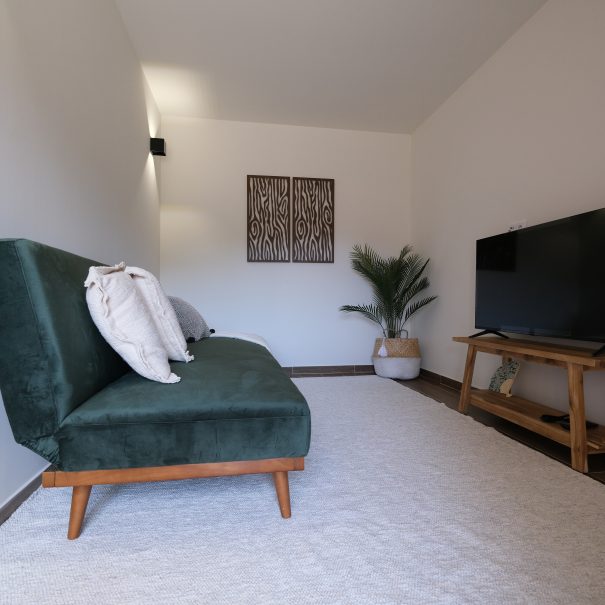 Da reabilitação do Palheiro, resultaram dois apartamentos T2. Ambos contam com uma cozinha semi equipada (sem forno), um sofá cama, uma cama de casal e duas casas de banho, sendo que uma é apenas de serviço. Além disto, o apartamento T2-1 (do Palheiro) conta com uma cama individual que se transforma em cama de casal e o apartamento T2-2 (da Fantasia) conta com um beliche. Estas duas soluções são ideias tanto para uma família numerosa, como para um grupo de amigos.