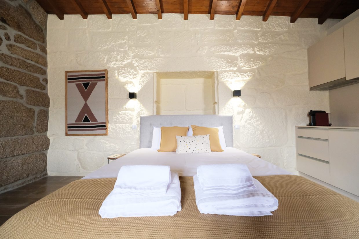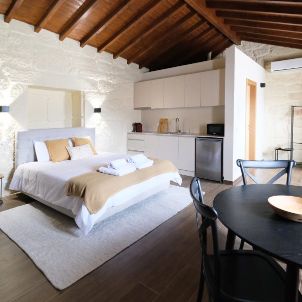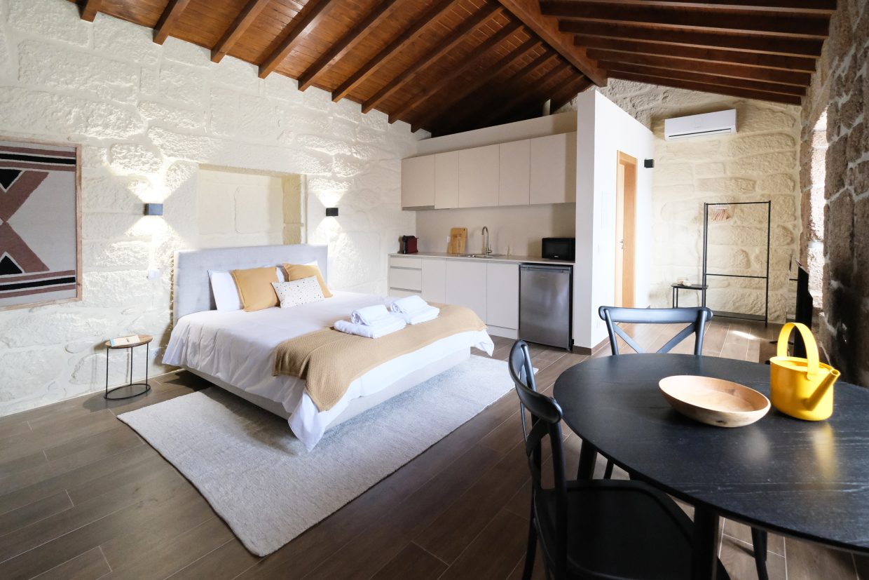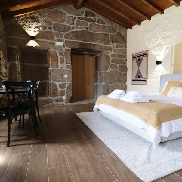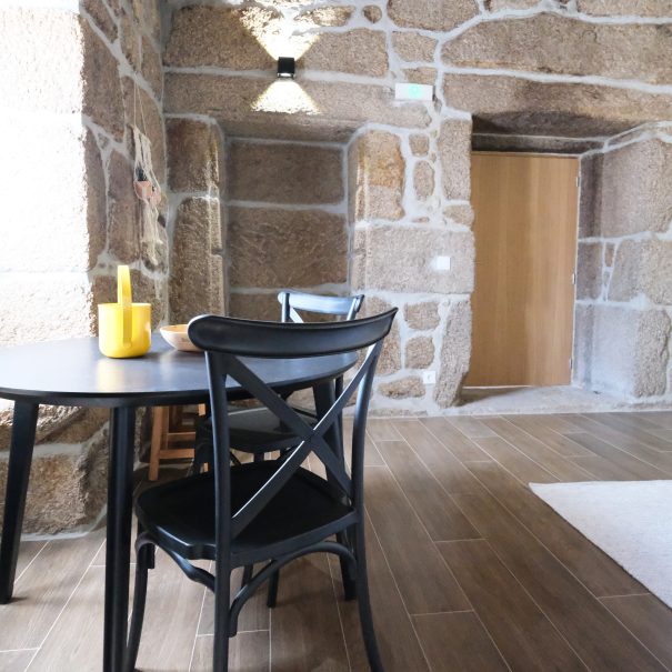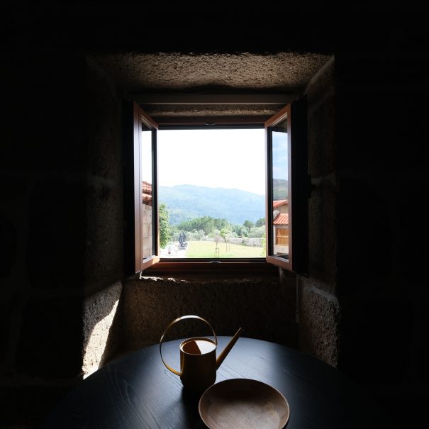 No primeiro andar, o apartamento das namoradeiras, terá uma vista privilegiada para o nosso jardim e para a serra. Conta com uma casa de banho privativa e uma cozinha semi-equipada (sem forno).