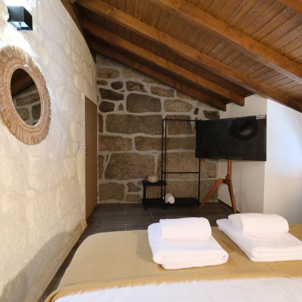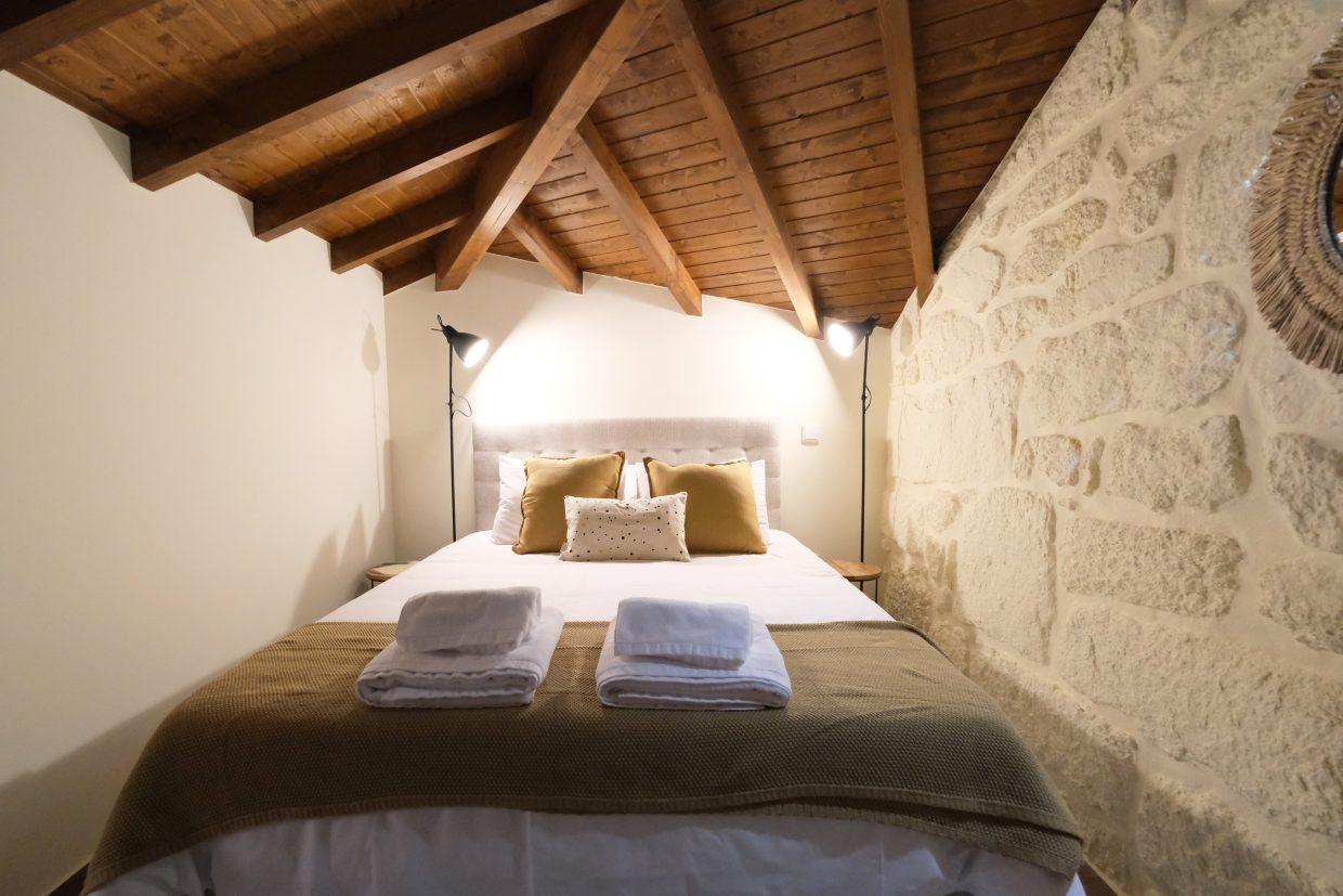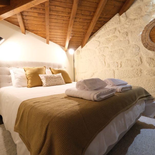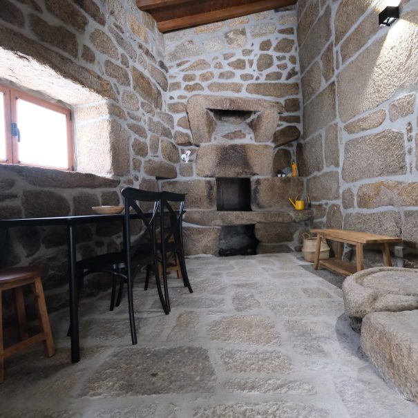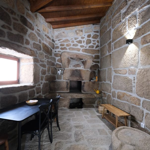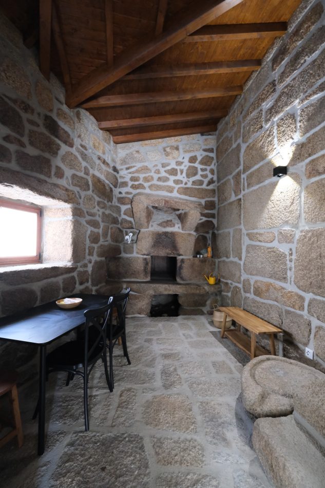 O apartamento dos Fornos define-se por ser aconchegante. Tem a peculiaridade de ter o quarto no andar superior e conta com a exposição dos fornos e da pia em pedra no andar inferior.